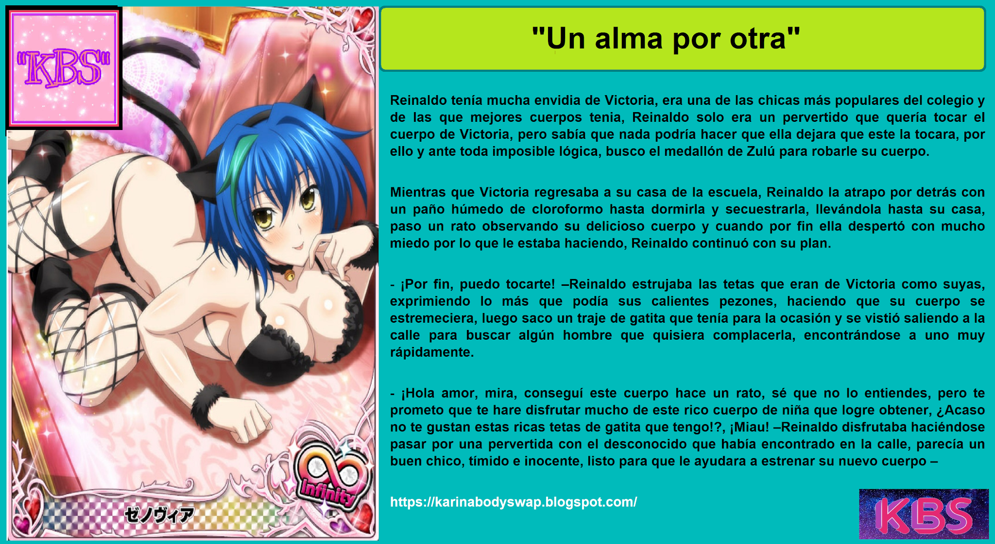 - ¡Hola amor, mira, conseguí este cuerpo hace un rato, sé que no lo entiendes, pero te prometo que te hare disfrutar mucho de este rico cuerpo de niña que logre obtener, ¿Acaso no te gustan estas ricas tetas de gatita que tengo!?, ¡Miau! –Reinaldo disfrutaba haciéndose pasar por una pervertida con el desconocido que había encontrado en la calle, parecía un buen chico, tímido e inocente, listo para que le ayudara a estrenar su nuevo cuerpo –